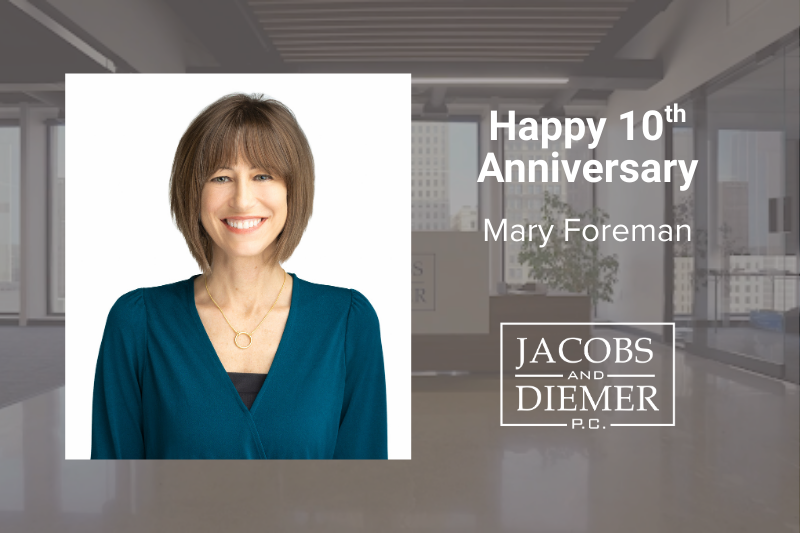 Jacobs and Diemer would not be what it is today without Mary. We are extremely lucky to work with Mary, and can only hope that others get to work with someone as great as her.